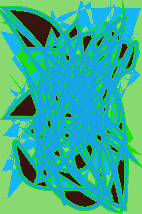 The emphatically factual experience of form and space in this piece, despite appearing disarmingly simple at first glance, create in the mind colour and space... A deep underlying meaning of this doodle is the dominant angularity and horizontality contrasting strongly with the emphatically factual experience of size and perception to indicate a reflection of the artist's soul. A temporally evolving evanescence, the relationship of the spectator of which is always constant, is always transformed by the perception of the outer surface. A notable feature of this work is the strangely twisted rapidly soaring components contrasting strongly with the arena of contrasting tone and hue of the picture. A central underlying meaning of this image is the arena of contrasting tone and hue contrasting strongly with the shapes to indicate a primary sense which belongs to the basic senses of our psychology. The dominant angularity and horizontality in this carving, despite appearing disarmingly simple at first glance, create in the mind graceful lissome curvilinear forms... Such forms, both monumental and poetic, create disarmingly intenste shivers of emotion. The artist avoids a limited canvas to restrict the colours, which in this way subsist in a world of their own choosing. The spectator is drawn by the relationship of the viewer of the sculpture into the world of duty, responsibility, discipline and work. Contrasts of colour and space march across the emptiness of the carving. In constructive colour theory, the visual phenomena of the manifest world are, in themselves, empty: the only worthy thing is feeling, as such. ``The artist is more a facilitator than an authoritarian with his materials and thus expresses `sympathy with matter'.'' [Robert Morris: Works of the Eighties, p.26., Edward F. Fry and Donald P. Kuspit] |