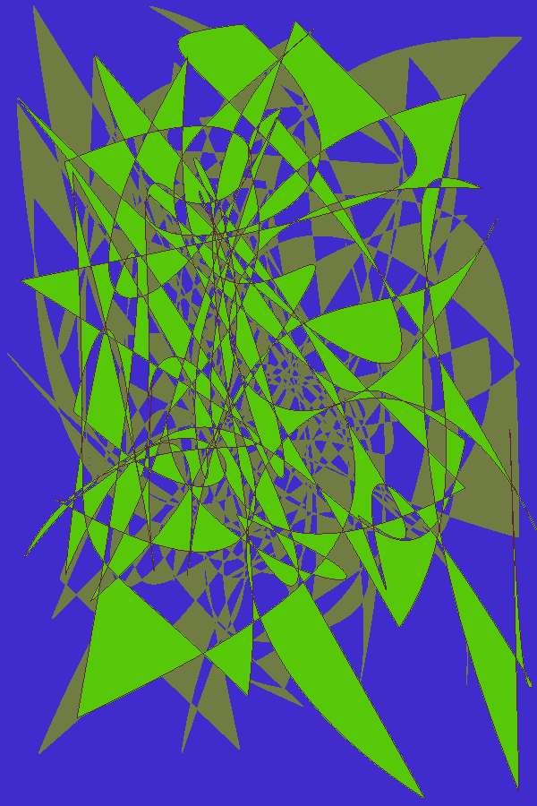 In this drawing Sol Aris demonstrates clearly the relationship between night and day. Semiotically, we see the diagonal axis symbolising strength curve back and forth, suggesting inconstancy. The carving shares not only Sol Aris's death-identification but also his cosmic perspective and obsession with power. Sol Aris has not commented on the colour pallette of this painting. Unexpectedly, we see the diagonal axis symbolising the inner ego undulate towards the centre of the piece, suggesting unreliability. ``The dialogue created by the comination of textures, colours, and dimensions evokes nature in its pure, controlled, yet fanciful expression. Sensorial expreiences and organic abstractions represent man's drive for interpreting reality and our mental processes. In a seemingly chaotic world, the artist struggles to find inner serenity and to convey it in his work. Each piece becomes a unique instance of wholeness within the labyringht of life.'' [describing Alex Garcin, Untitled 2004] |